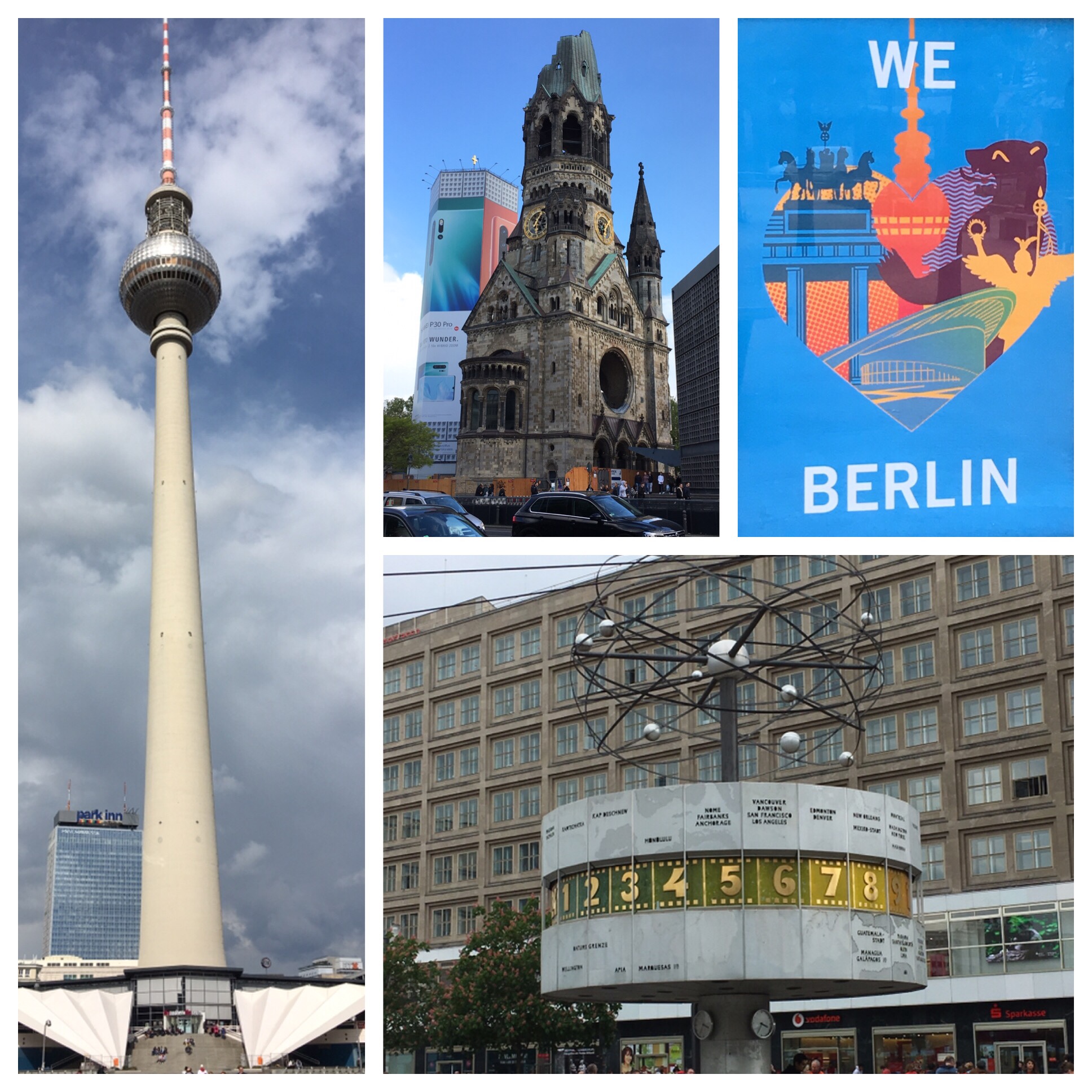 Mais c’est surtout le monde moderne et l’histoire qui cohabite comme l’église du souvenir et la nouvelle église toute en verre ou la tour de télé qui domine la ville