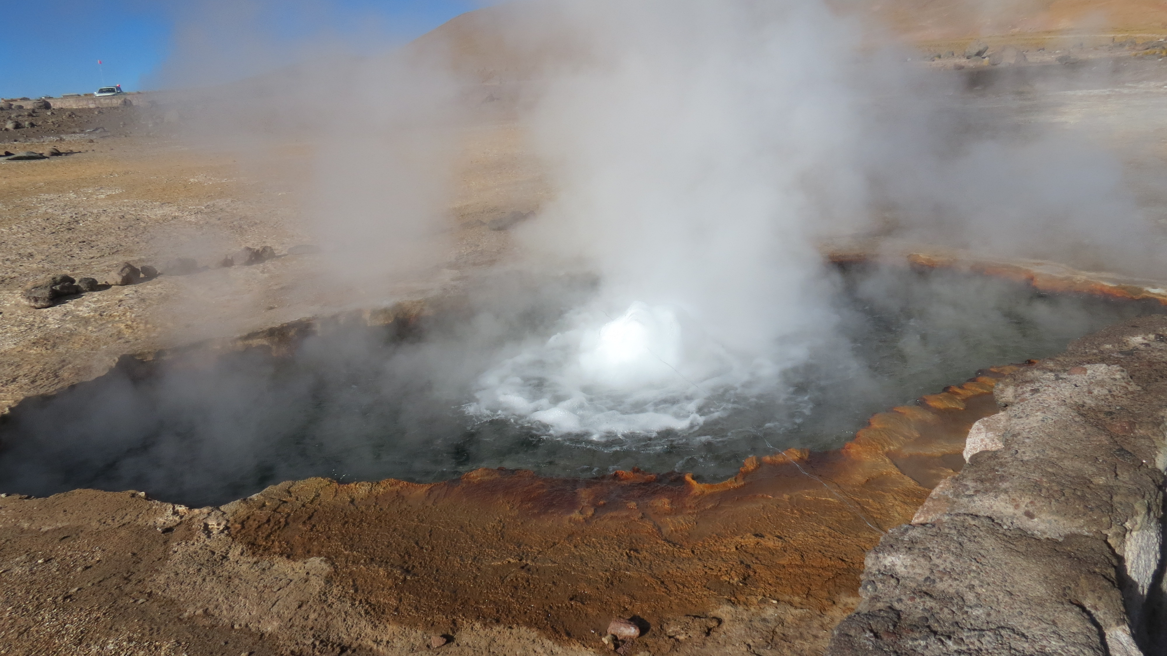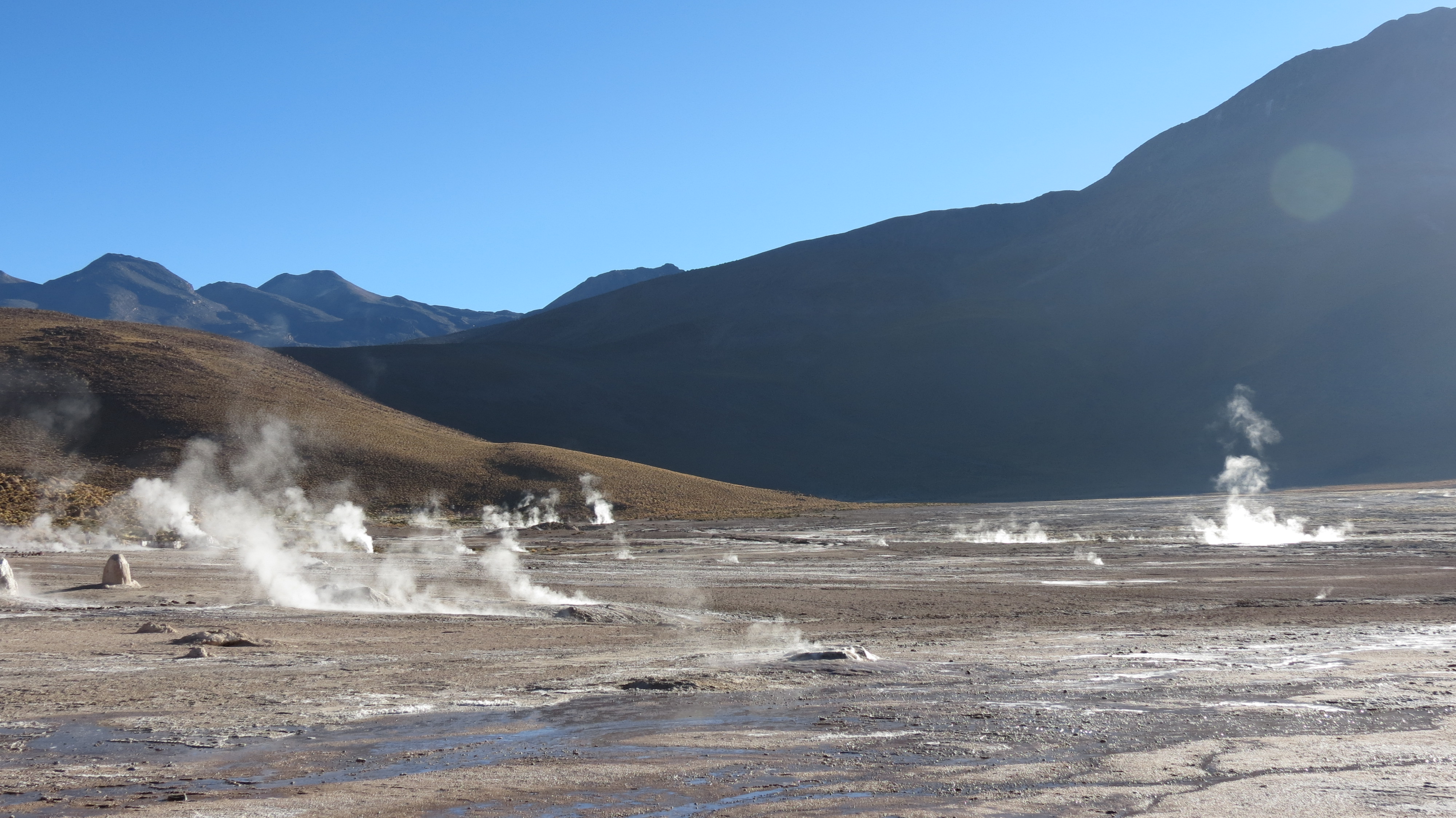 réveil à 4AM, température bien en dessous de 0°, altitude environ 4200m et c’est parti pour un tour dans le parc des geysers del Tatio